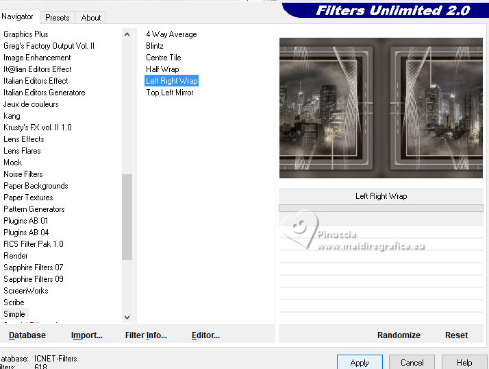 Effects>Plugins>Filters Unlimited 2.0 - Simple - Left Right Wrap.