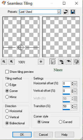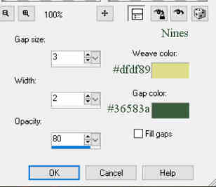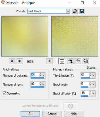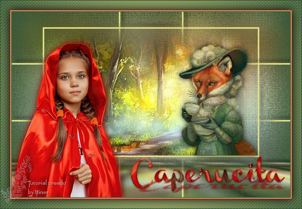 2.- Llenar con un Gradiente Sunburts angulo y repeticiones 0 Colores: Foreground : #dfdf89 Background : #36583a 3.- En nueva capa pegar el Paysage misted jewel 058 4.- Adjust Gaussian Blur/Radius 20 ![]() 5.- Fusionar visibles 6.- Efectos Texture/Mosaic-Antique s/captura 92/92/61/5/49/Symetric ![]() 7.- Duplicar capa 8.- Aplicar el filtro Mura's Meister/Perspective Tiling s/captura 80/0/0/25/0/0/100/255 ![]() 9.- Efectos sombra -10/10/50/15 color #000000 10.- Con la varita magica configurada s/captura,seleccionar la parte transparente y dar 3 toques con la tecla suprimir.Quitar seleccion ![]() 11.- Nueva capa enviar abajo y llenar con el color #36583a 12.- Colocaros en la capa 1 (capa fusionada) 13.- Con la herramiente seleccion-rectangulo, hacer una seleccion personificada s/captura Top 50/Left 100/Right 800/Bottom 470 ![]() 14.- Promover a capa la seleccion 15.- Nueva capa y llenar con el color #dfdf89 16.- Seleccionar/Modificar/Contraer 3 px/0k/Suprimir.No quitar seleccion 17.- En nueva capa pegar el Paysage misted jewel 058 y redimensionar al 70% solo esta capa 18.- Seleccion Invertir/ Suprimir/Quitar seleccion 19.- Aplicar el filtro FM Tile Tools/Saturation Emboss s/captura ![]() 20.- Duplicar la capa del marco (puntos 15 y 16) 21.- Efectos Imagen/Seamless Tiling (Mosaico integrado por defecto) Corner/Biderictional/Linear/0/0/50 ![]() 22.- Efectos sombra -10/10/50/15 color #000000 23.- En nueva capa pegar el Vos12112015es tube by Ellys y redimensionar al 70% y otra vez al 90%. 24.- Colocarlo sobre la ralla amarilla del marco 25.- Efectos sombra 0/0/80/25 color #000000 26.- En nueva capa pegar el Tube mentali-enfant89 y redimensionar al 80% y otra vez al 90% 27.- Efectos sombra 0/0/80/25 color #8d0807 ( 2 veces ) 28.- En nueva capa pegar el Texto-Caperucita-nines 29.- Aplicar el filtro Eye Candy 3.1/Perspective Shadow s/captura 45/40/40/50/10 color #800000 ![]() 30.- Efectos sombra 1/1/100/1 color #8d0807 31.- Fusionar todo 32.- Agregar borde 2 px color #36583a 33.- Agregar borde 2 px color #dfdf89 34.- Agregar borde 30 px color #FFFFFF 35.- Seleccionar este borde con la varita magica 36.- Llenar con el mismo Gradiente del punto 2 37.- Efectos Texture/Weave s/captura 3/2/80/colores #dfdf89 y #36583a ![]() 38.- Seleccion Invertir 39.- Efectos sombra 0/0/100/45 color #000000 40.- Quitar seleccion 41.- Agregar borde 2 px color #36583a 42.- Exportar y guardar en jpg Tutorial creado