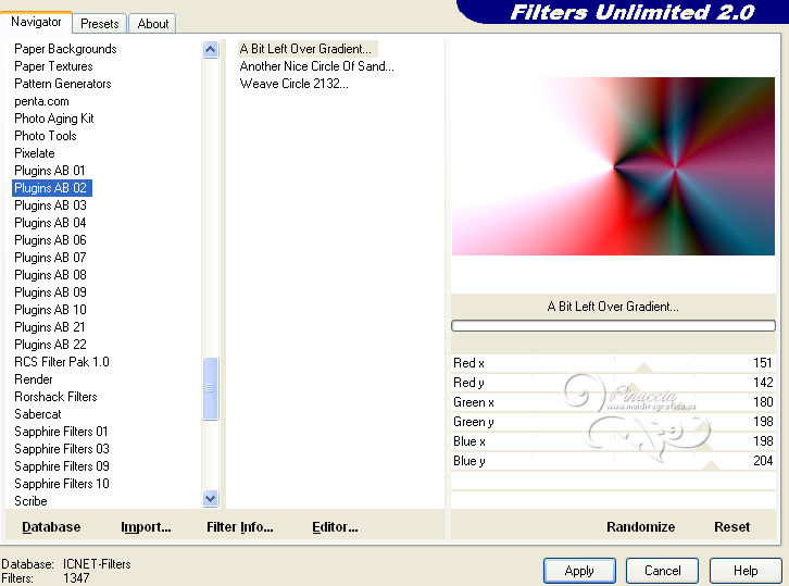 3. Effetti>Plugins>Filters Unlimited 2.0 - Plugins AB 02 - A Bit Left Over Gradient.