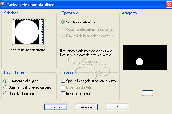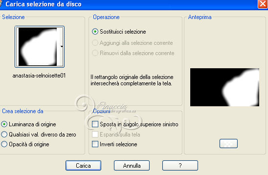 Selezione>Carica/salva Selezione>Carica Selezione da disco.