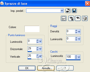 8. Effetti>Effetti di illuminazione>Sprazzo di luce - colore bianco #ffffff.