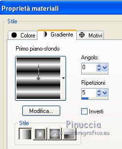 Passa il colore di primo piano a Gradiente, stile Lineare, con i seguenti settaggi.