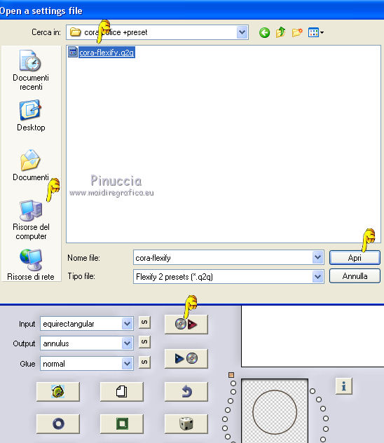 clicca sulla freccia rossa e cerca, nella cartella in cui lo hai copiato, il preset cora-flexify.q2q
