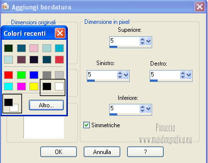 42. Immagine>Aggiungi bordatura, 5 pixels, simmetriche, con il colore bianco. cliccando con il tasto destro del mouse sulla paletta del colore, avrai la tabella dei colori recenti.