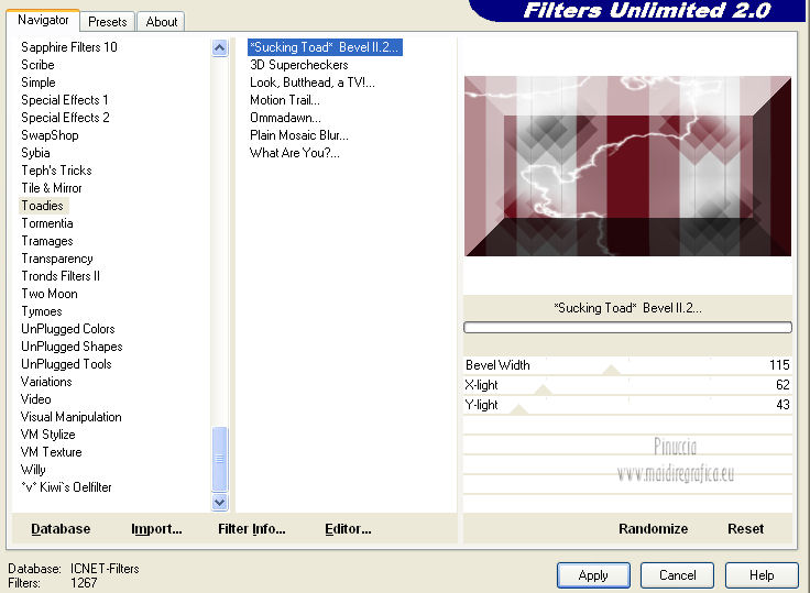 I filtri Simple, Italian Editors, Toadies e Graphics Plus si possono usare da soli o importati in Filters Unlimited.