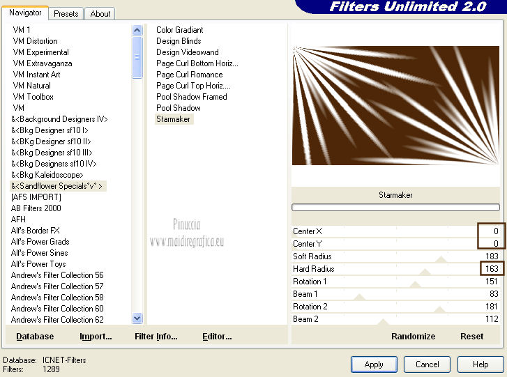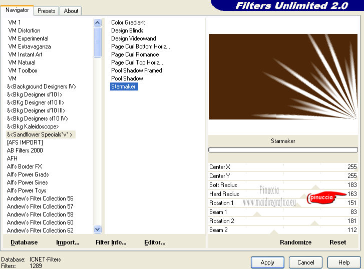 4. Effetti>Plugins>Filters Unlimited 2.0 - Sandflower Special 'V' - Starmarker.