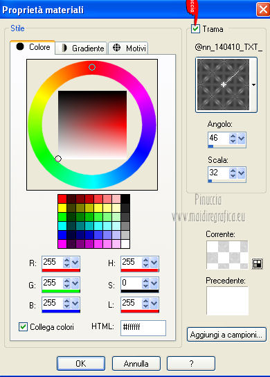 seleziona Trama e imposta la trama @nn_140410_TXT_017_tdstudio con i seguenti settaggi.