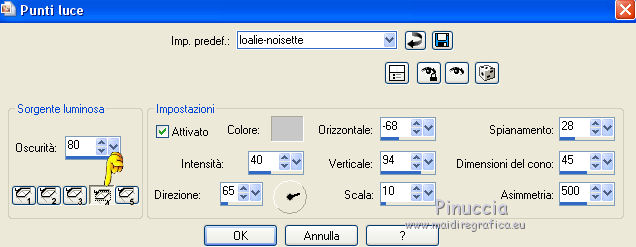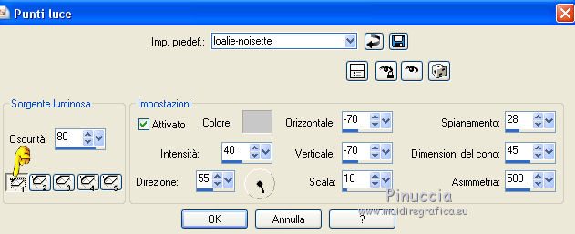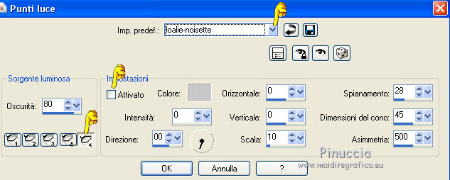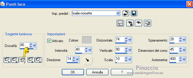 Se hai problemi con il preset, questi sono i settaggi dei quattro punti luce attivati.