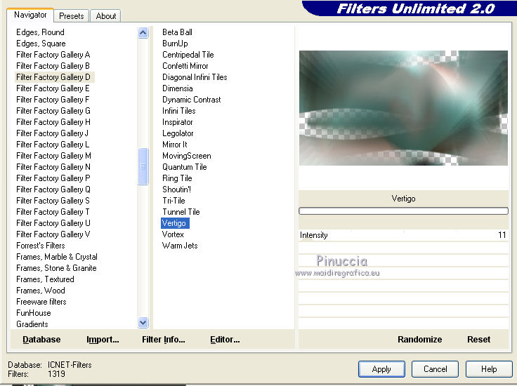 11. Effetti>Plugins>Filters Unlimited 2.0 - Filter Factory Gallery D - Vertigo