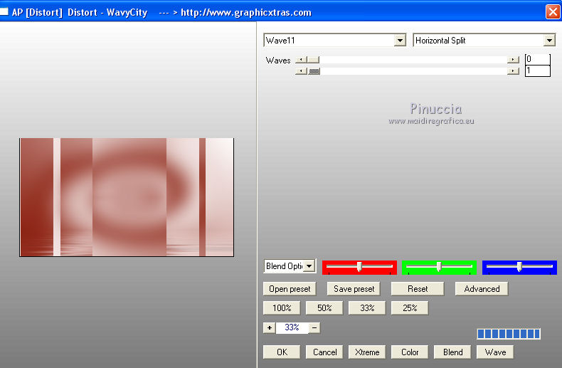 10. Di nuovo Effetti>Plugins>AP 01 [Distort] - Distort-WavyCity, con i seguenti settaggi
