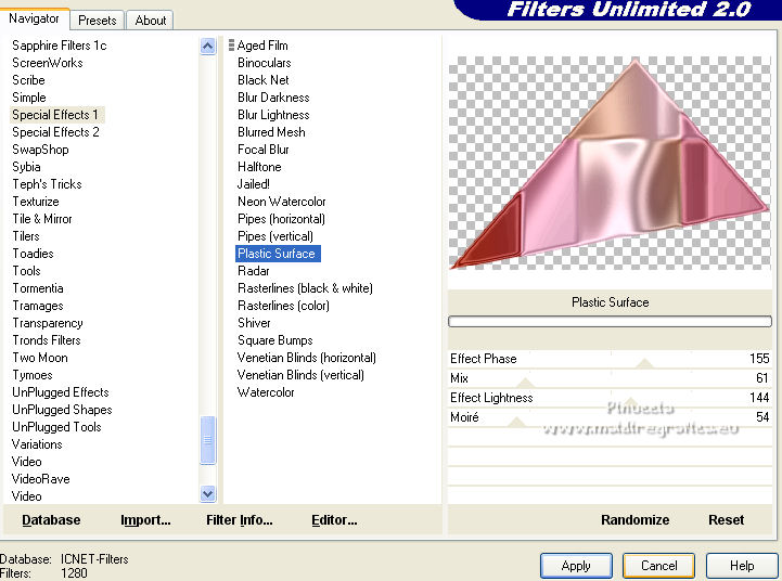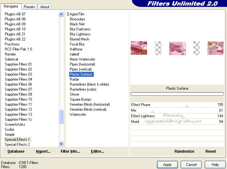 31. Effetti>Plugins>Filters Unlimited 2.0 - Special Effects 1 - Plastic Surface, con i settaggi standard.