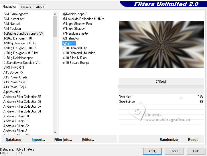 6. Effetti>Plugins>Filters Unlimited 2.0 - &Background Designers IV> - @Splish, con i settaggi standard.