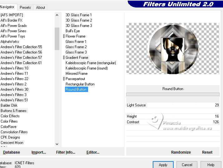 42. Effetti>Plugins>Filters Unlimited 2.0 - Buttons & Frames - Round Button, con i settaggi standard.