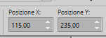 Imposta Posizione X: 115,00 e Posizione Y: 235,00