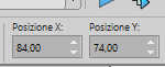 Imposta Posizione X: 84,00 e Posizione Y: 74,00