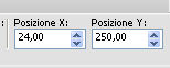 e imposta Posizione X: 24,00 e Posizione Y: 250,00.
