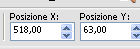 e imposta Posizione X: 518,00 e Posizione Y: 63,00.