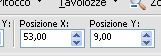 Imposta Posizione X: 53,00 e mantieni Posizione Y: 9,00.