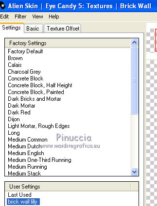 22. Effetti>Plugins>Alien skin Eye Candy 5 Textures - Brick Wall,