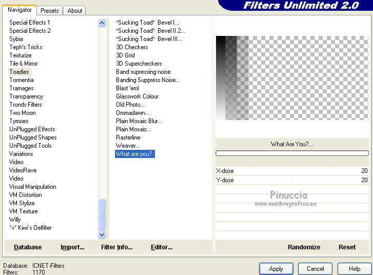 9. Effetti>Plugins>Filters Unlimited 2.0 - Toadies - What are you