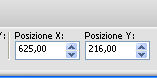 e imposta Posizione X: 625,00 e Posizione Y: 216,00.