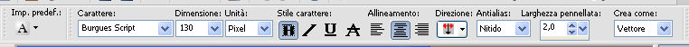 font Burgues Script, dimensione 130 pixels, larghezza pennellata 2.