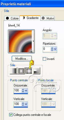 1. Passa il colore di primo piano a Gradiente, e seleziona il gradiente bhw4_14.PspGradient, stile Lineare.