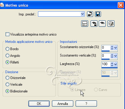 Seleziona il preset Emboss_3 e ok. se hai problemi con il preset, puoi impostare manualmente i settaggi che vedi nella schermata