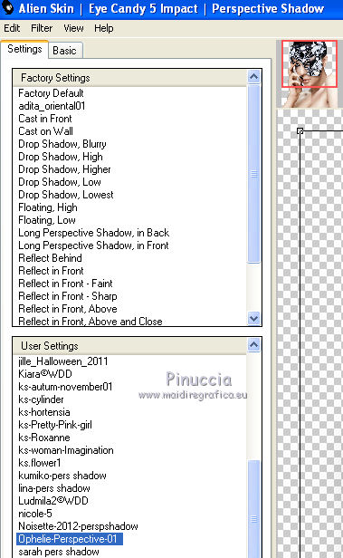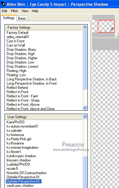 Seleziona il preset Ophelie-Perspective-03 e ok.