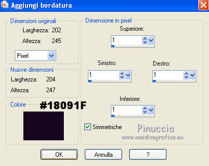 36. Immagine>Aggiungi bordatura, 1 pixel, simmetriche, con il colore #18091f.