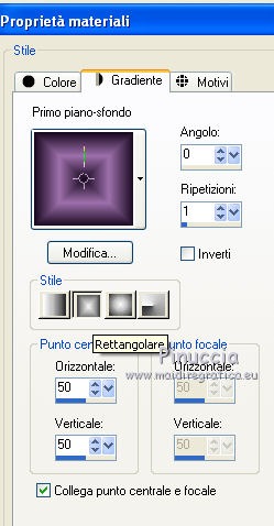 Passa il colore di primo piano a Gradiente, stile Rettangolare, con i seguenti settaggi.