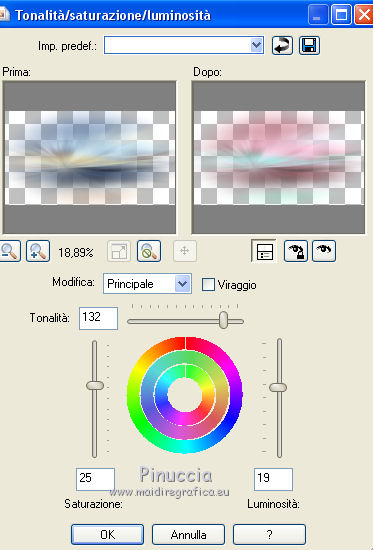Regola>Tonalità e saturazione>Tonalità/Saturazione/Luminosità (viraggio non selezionato!)