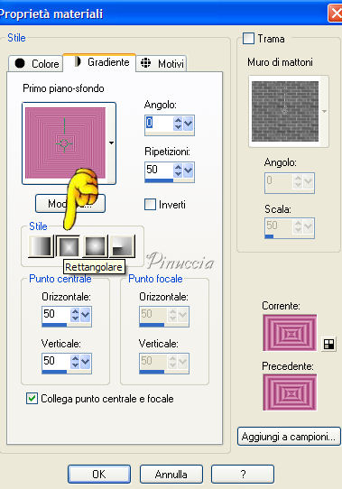 3. Prepara un gradiente rettangolare, angolo 0, ripetizioni 50.