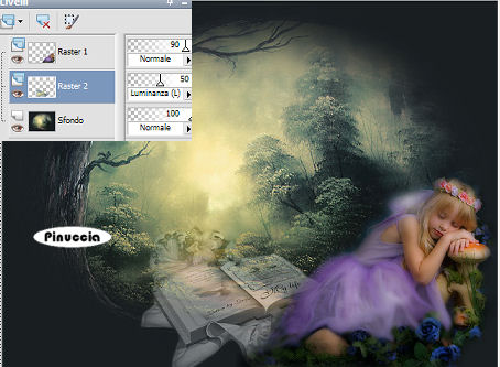 qui puoi trovare qualche risposta ai tuoi dubbi. Se l'argomento che ti interessa non è presente, ti prego di segnalarmelo. Questo tutorial è stato scritto in PSP 9, ma può essere eseguito con qualsiasi versione del programma. E' dedicato dall'autrice alla nipotina Kelly. Occorrente: Materiale qui Filtro Xero - Porcelain qui 1. Apri il tube forestEdge-Bobross. Elimina il livello del watermark. Livelli>Unisci>Unisci tutto. Questa sarà la base del tuo lavoro. Apri il tube "DB-TranquillHeartz Designs1-06-sleeping" e vai a Modifica>Copia. Torna al tuo lavoro e vai a Modifica>Incolla>Incolla come nuovo livello. Immagine>Ridimensiona, all'85%, tutti i livelli non selezionato. Spostalo in basso a destra.Nella paletta dei livelli abbassa l'opacità di questo livello al 90%. Effetti>Plugins>Xero - Porcelain, con i settaggi standard. ![]() Apri il tube Boek e vai a Modifica>Copia. Torna al tuo lavoro e vai a Modifica>Incolla>Incolla come nuovo livello. Immagine>Ridimensiona, all'85%, tutti i livelli non selezionato. Livelli>Disponi>Sposta giù. Posiziona il libro al centro ma un po' dietro la bambina.Cambia la modalità di miscelatura di questo livello in Luminanza (esistente) e abbassa l'opacità al 50%. ![]() 2. Apri il tube Museofmusic. Immagine>Ridimensiona, per tre volte all'85%. Modifica>Copia. Torna al tuo lavoro e vai a Modifica>Incolla>Incolla come nuovo livello. Spostalo a sinistra, contro il tronco dell'albero.![]() Abbassa l'opacità di questo livello all'80%. 3. Apri il tube "sexy fairy", e vai a Modifica>Copia. Torna al tuo lavoro e vai a Modifica>incolla>Incolla come nuovo livello. Immagine>Rifletti. Immagine>Ridimensiona, 4 volte all'85%, e 1 volta all'80%. Spostalo a sinistra sui rami dell'albero.![]() Abbassa l'opacità di questo livello al 70%. Apri il tube fairy-autumn e vai a Modifica>Copia. Torna al tuo lavoro e vai a Modifica>Incolla>Incolla come nuovo livello. Immagine>Ridimensiona, 5 volte all'85%. Immagine>Rifletti. Spostalo nell'angolo in basso a sinistra.Abbassa l'opacità di questo livello al 70%. 4. Apri il tube 58. Immagine>Ridimensiona, 4 volte all'85%. Modifica>Copia. Torna al tuo lavoro e vai a Modifica>Incolla>Incolla come nuovo livello. Sposta questo tube sopra la bambina.Effetti>Plugins>Xero - Porcelain, con i settaggi standard. Controlla che tutto sia al posto giusto. Se necessario, puoi ancora spostare gli elementi della tua tag, per sistemarli meglio. Quando sei soddisfatto: Livelli>Unisci>Unisci visibile. ![]() 5. Apri il tube "mmivy cornermm" e vai a Modifica>Copia. Torna al tuo lavoro e vai a Modifica>Incolla>Incolla come nuovo livello. Sposta il tube nell'angolo in alto a sinistra.Livelli>Duplica. Immagine>Rifletti. Livelli>Unisci>Unisci tutto. 6. Copia l'immagine: Modifica>Copia. Immagine>Aggiungi bordatura, 15 pixels, simmetriche, con il colore bianco. Seleziona questo bordo con la bacchetta magica ![]() ![]() Livelli>Nuovo livello raster. Modifica>Incolla>Incolla nella selezione. Regola>Sfocatura>Sfocatura gaussiana, raggio 5. ![]() Selezione>Nessuna selezione. Immagine>Aggiungi bordatura, 1 pixel, simmetriche, con il colore nero. Immagine>Ridimensiona, a 575 pixels di larghezza. 7. Adesso glitteriamo un po' la tag. Attiva lo strumento Selezione a mano libera , punto a punto.![]() Seleziona le piccole linee sulle alette degli elfi. ![]() Mantieni selezionato. Livelli>Duplica, 3 volte. Alla fine avrai in totale quattro livelli. Attiva il livello superiore. Regola>Aggiungi/rimuovi disturbo>Aggiungi disturbo, con i seguenti settaggi: ![]() Ripeti lo stesso passaggio sugli altri livelli, incrementando ogni volta il disturbo di 10. Selezione>Nessuna selezione. Salva il tuo lavoro in formato psp. 8. Apri Animation shop. Apri l'immagine che hai appena salvato. Ti troverai una animazione con 4 fotogrammi. Clicca sul primo fotogramma per selezionarlo e vai a Modifica>Seleziona tutto. Apri l'animazione "fairy". Clicca sul primo fotogramma per selezionarlo e vai a Modifica>Seleziona tutto. Torna al tuo lavoro e vai a Modifica>Incolla>Incolla nel fotogramma selezionato. Posiziona la fatina sul libro e, quando sei certo di aver trovato la posizione corretta, rilascia il tasto del mouse. Animazione>Proprietà fotogramma, e imposta la velocità a 35. ![]() Controlla il risultato cliccando su Visualizza , e salva in formato gif.![]() Se hai problemi o dubbi, o trovi un link non funzionante, o anche soltanto per un saluto, scrivimi. 27 Luglio 2007 |