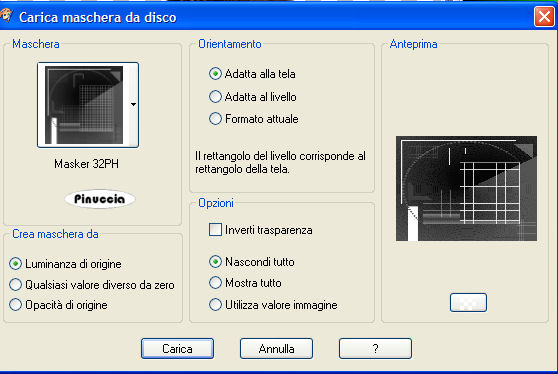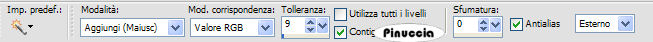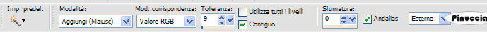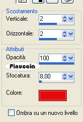 qui puoi trovare qualche risposta ai tuoi dubbi. Se l'argomento che ti interessa non è presente, ti prego di segnalarmelo. Questo tutorial è stato scritto in PSP 9, ma può essere eseguito con qualsiasi versione del programma. I tubes che ho usato vengono da gruppi di share. Per favore, rispetta il lavoro degli autori e mantienili al loro stato originale. Occorrente: Materiale qui Metti la maschera nella cartella Maschere di PSP. 1. Apri una nuova immagine trasparente 600 x 450 pixels. Riempi l'immagine trasparente con il nero #000000.Livelli>Nuovo livello raster. Riempi il nuovo livello con il colore grigio #c0c0c0.2. Livelli>Carica/Salva maschera>Carica maschera da disco. Cerca e carica la maschera 32PH: ![]() Livelli>Elimina, e rispondi sì alla domanda Unire la maschera nel livello corrente?. ![]() Livelli>Unisci>Unisci gruppo. Regola>Messa a fuoco>Metti a fuoco, 2 volte. 3. Apri il tube SS_1406_Tube. Immagine>Scala dei grigi. Immagine>Ridimensiona, 2 volte all'80%, e 1 volta al 93%. Immagine>Rifletti. Modifica>Copia. Torna al tuo lavoro e vai a Modifica>Incolla>Incolla come nuovo livello. Sposta il tube a destra della griglia.![]() 4. Apri il tube EvangelineLilly_di06. Immagine>Scala dei grigi. Immagine>Ridimensiona, 4 volte all'80%. Immagine>rifletti. Modifica>Copia. Torna al tuo lavoro e vai a Modifica>Incolla>Incolla come nuovo livello. Sposta il tube a sinistra.Effetti>Effetti 3D>Sfalsa ombra, con i seguenti settaggi. ![]() 5. Livelli>Unisci>Unisci tutto. Immagine>Aggiungi bordatura, 2 pixels, simmetriche, con il colore grigio #c0c0c0. Immagine>Aggiungi bordatura, 15 pixels, simmetriche, con il colore nero. Immagine>Aggiungi bordatura, 2 pixels, simmetriche, con il colore #c0c0c0. 6. Attiva lo strumento Testo , font LambrettistA,crea come vettore, dimensione 48, pennellata 1, ![]() se stai usando PSP X, dovrai regolare la dimensione perchè i pixels nelle due versioni non corrispondono. Su queste differenze, vedi in fondo a questa pagina Imposta il colore di primo piano con il nero, e il colore di sfondo con il grigio. Scrivi la parola "Work" e posizionala in alto a sinistra. Livelli>converti in livello raster. Effetti>Effetti 3D>Sfalsa ombra, con i seguenti settaggi, colore #e90b0b. ![]() Ripeti l'Effetto Sfalsa ombra, ma cambiando verticale e orizzontale a -4. nel mio esempio ho cambiato il settaggio dell'Effetto, senza la ripetizione con il segno meno. Questi i miei settaggi: ![]() scegli il settaggio che preferisci. 7. Imposta il colore di sfondo con il bianco. Attiva nuovamente lo strumento Testo ![]() font Lady Ice Revisited, crea come vettore, dimensione 30, pennellata 0, ![]() e scrivi la parola "that body" e posizionalo a destra della parola Work, vedi l'esempio finale. Livelli>Converti livello raster. Livelli>Unisci>Unisci tutto. Aggiungi il tuo watermark. Adesso l'animazione. 9. Attiva lo strumento Bacchetta magica , con i seguenti settaggi:![]() Clicca su 5 quadretti della griglia per selezionarli. Selezione>Modifica>Espandi di 1 pixel. Livelli>Nuovo livello raster. Riempi i quadrati con il colore rosso #e90b0b.Selezione>Nessuna selezione. Modifica>Copia Unione. Apri Animation Shop. Clicca con il tasto destro del mouse sullo spazio vuoto e Incolla come nuova animazione. ![]() Ritorna in PSP, e clicca su Modifica>Annulla azione... cliccando sull'icona relativa fino alle selezioni con la bacchetta magica. a questo punto, ti dò un consiglio. Siccome dovrai ripetere queste azioni un'altra volta, ti conviene duplicare l'immagine con shift+D e minimizzare il duplicato. 10. Clicca con la bacchetta magica su altri cinque quadretti.Selezione>Modifica>Espandi, di 1 pixel. Livelli>Nuovo livello raster. Riempi con il colore rosso #e90b0b.Selezione>Nessuna selezione. Modifica>Copia unione. Di nuovo in Animation Shop: Modifica>Incolla>Incolla dopo il fotogramma corrente. 11. Ritorna in PSP. Attiva il duplicato dell'immagine a ripeti il passo 10, cliccando su altri 5 quadretti. In Animation Shop adesso la tua animazione è composta da tre fotogrammi. Clicca sul primo fotogramma per selezionarlo e vai a Modifica>Seleziona tutto. Apri la gif fornita con il materiale: Tileline1d. Clicca sul primo fotogramma per selezionarlo e vai a Modifica>Seleziona tutto e poi Modifica>Copia. Torna al tuo lavoro e vai a Modifica>Incolla>Incolla nel fotogramma selezionato. Posiziona la linea in alto, sulla striscia grigia interna e, quando hai trovato la posizione corretta, rilascia il tasto del mouse. Ritorna alla gif e vai a Animazione>Ruota>90 gradi a destra. Modifica>Seleziona tutto, Modifica>Copia. Per l'ultima volta riprendi il tuo lavoro e vai a Modifica>Incolla>Incolla nel fotogramma selezionato. Posiziona la linea a sinistra, sulla striscia grigia interna e, quando hai trovato la posizione corretta, rilascia il tasto del mouse. 12. In ultimo, dovrai correggere la velocità dell'animazione: Animazione>Proprietà fotogramma, e imposta la velocità a 25. ![]() Controlla il risultato cliccando su Visualizza e salva in formato gif.![]() Se hai problemi o dubbi, o trovi un link non funzionante, o anche soltanto per un saluto, scrivimi. 27 Luglio 2007 |