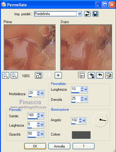 Effetti>Effetti tecniche di disegno>Pennellate, con i settaggi standard.