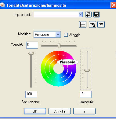 5. Regola>Tonalitą e saturazione>Tonalitą/Saturazione/Luminositą: