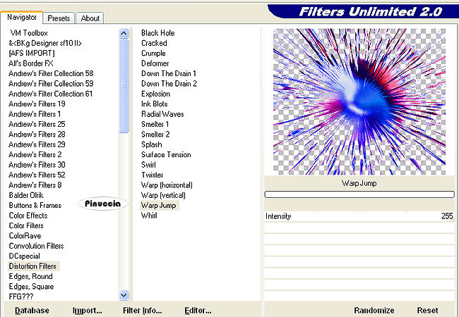 6. Effetti>Plugins>Filters Unlimited - Distortion Filter - Warp jump: