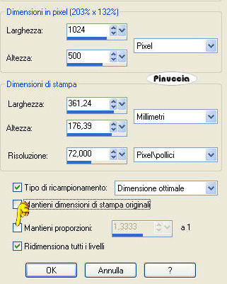 2. Immagine>Ridimensiona, 1024 x 500 pixels, mantieni proporzioni non selezionato.
