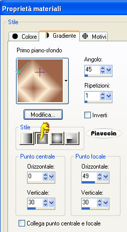 Passa il colore di primo piano a Gradiente di primo piano/sfondo, con i seguenti settaggi: