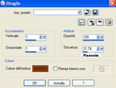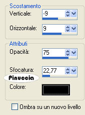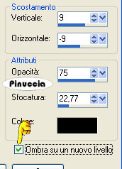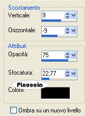 8. Effetti>Effetti 3D>sfalsa ombra, con i seguenti settaggi, ombra su nuovo livello selezionato.