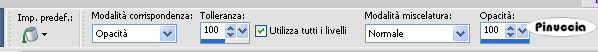 5. Imposta lo strumento Riempimento su Opacità (tolleranza e opacità 100):