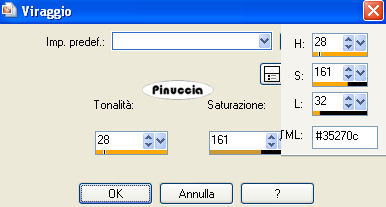 Regola>Tonalità e saturazione>Viraggio e trascrivi i valori annotati nelle rispettive caselle.
