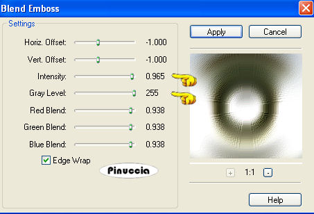 5. Effetti>Plugins>FM Tile Tools - Blend Emboss, 2 volte, con i seguenti settaggi:
