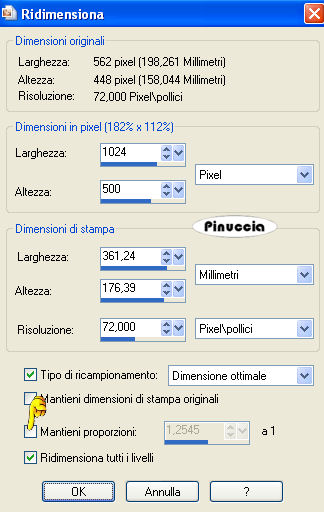 Immagine>Ridimensiona - 1024 x 500, mantieni proporzioni non selezionato: