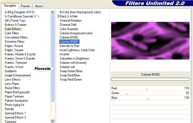 3. Effetti>Plugins>Filters Unlimited - Color Effects - Colorize (RGB):
