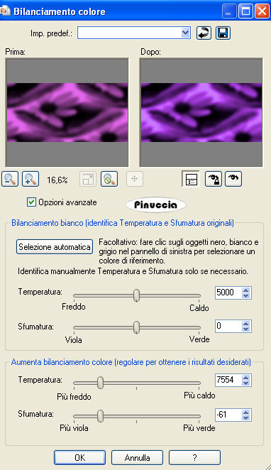 ho impostato il settaggio che mi sembrava più simile all'esempio, anche se il risultato non sarà esattamente uguale.