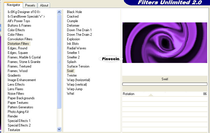 6. Effetti>Plugins>Filters Unlimited - Distortion Filters - Swirl: