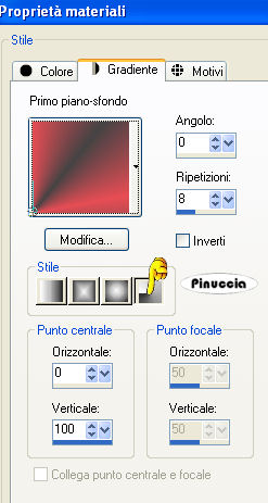 Passa il colore di primo piano a Gradiente, con i seguenti settaggi: