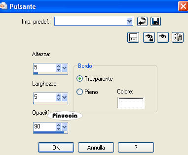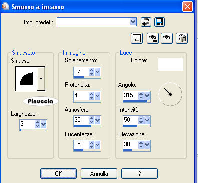 Effetti>Effetti 3D>Smusso a incasso, con i seguenti settaggi.